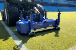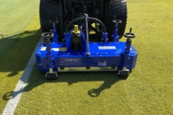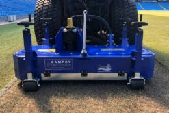 The Campey Uni-Scratch is the ideal solution for those looking for a professional and effective maintenance of natural and synthetic grass surfaces. The Campey Uni-Scratch has been developed to infill or refill when installing or looking after synthetic grass carpets. It can also be used for the final organic matter removal on natural grass hybrid carpet pitches when carrying out annual renovations. The Uni-Scratch moves on 4 supporting rollers which are adjustable in height to allow the most appropriate working depth. The rotors can be equipped with springs or linear brushes in PPL. Rear linkage to tractors of at least 30hp.